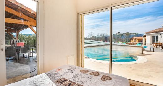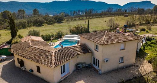 EXCLUSIVITE - VILLA DE 270 M2 AVEC PISCINE SUR 11 000 m2 DE TERRAIN PLAT (FORTE RENTABILITE POUR INVESTISSEUR) En vente : découvrez cette villa de 270 m2 sur 11 000 m2 de terrain plat entièrement clôturé à BAGNOLS EN FORET (83600). Elle est orientée plein sud. Une cuisine américaine équipée avec îlot central communique avec une grande salle à manger. Elle est composée de neuf chambres dont 4 en suite (salle d'eau) et deux salles de bains supplémentaires. Un chauffage à air pulsé est installé dans cette maison indépendante, ainsi qu'une climatisation réversible.Un grand salon lumineux de 60 m2 avec accès direct à la piscine dispose également d'une cheminée et d'un poêle à granules. Une grande piscine (12x6) chauffée et couverte par un dôme coulissant, un pool house avec barbecue, un chalet doté d'un spa, une aire de jeux et un terrain de pétanque, complète cette maison. Une terrasse de 300 m2 vient l'agrémenter. Un grand sous-sol carrelé et aménageable complète cette maison. C'est une maison avec un étage. Elle est en bon état général. Accès facile avec deux entrées possibles et un portail motorisé, de nombreuses places de parking sont prévues pour stationner vos véhicules. L'Ecole Primaire Frédéric Gagliolo est implantée à moins de 10 minutes à pied. On trouve un accès à l'autoroute A8 à 9 km, FREJUS et SAINT RAPHAEL à 30 minutes environ. Il y a des commodités, restaurants et un bureau de poste à proximité. Le prix de vente de cette maison est de 979 000 euros (honoraires à la charge du vendeur).Idéal pour une grande famille ou un investisseur (location saisonnière très demandée). Votre agence vous invite à découvrir toutes les originalités de cette maison à vendre en prenant RDV avec l'un de nos négociateurs immobilier. Proposée en Exclusivité par votre Agence immobilière Orpi. Visite virtuelle 3D disponible en agence. Thomas ISIERTE (EI) Agent Commercial - Numéro RSAC : - . 979000 euros Honoraires à la charge du vendeur.