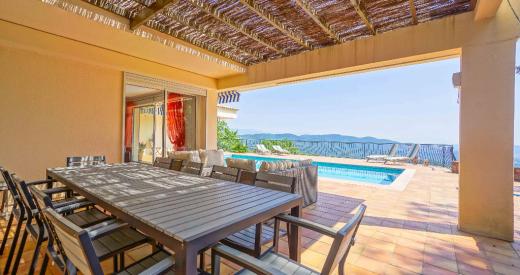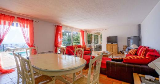 BIEN VENDU PAR ORPI, SOUS PROMESSE DE VENTE . A 10 minutes de MANDELIEU, Parc résidentiel de l'Estérel : Merveilleuse situation pour cette villa à l'architecture moderne. Vue Mer imprenable sur la baie de Cannes et les massifs de l'Esterel. 174 m2 habitables en excellent état. Grand terrain de 5800 m2. Cuisine US moderne sur lumineux séjour avec poêle à bois donnant sur grande terrasse vue Mer avec piscine chauffée. Vaste suite parentale avec belle salle d'eau donnant côté piscine. 4 chambres au total, 3 salles d'eau. Nombreux espaces de rangements, disposition fonctionnelle. Accès facile, calme absolu, vue féerique, domaine sécurisé. Possibilité d'acquérir un grand terrain attenant en plus. Proposée par Votre Agence Immobilière ORPI. Visite Virtuelle 3D disponible dans votre Agence. 990000 euros Honoraires à la charge du vendeur.