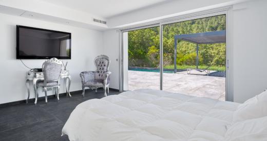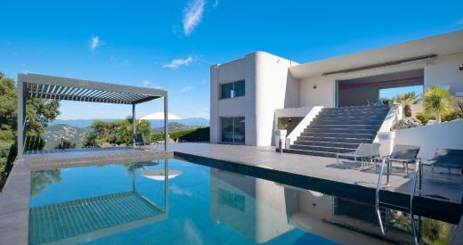 Superbe villa moderne de plus de 349 m2 décorée par un architecte et composée au rez-de-chaussée : d'un salon très lumineux ouvert de chaque côté sur une terrasse, d'une cuisine indépendante équipée, d'un WC séparé, d'un bureau et d'une chambre de maître offrant une vue imprenable sur l'Esterel avec salle d'eau et de bain attenante. Au rez-de-jardin se trouve 2 chambres avec placards et avec pour chacune soit salle d'eau soit salle de bain. Un espace télévision, une buanderie, un garage et 2 chambres indépendantes avec salles d'eau attenantes. Détente et sérénité sont assurées au sein de cette villa : autour de la piscine et de son pool house, ou au choix, autour d'une partie de pétanque. Nichée au coeur d'un domaine résidentiel sécurisé elle se trouve sur un terrain arboré de 7 000 m2 et à 10 minutes de tous commerces. Bien d'Exception proposé par votre Agence Immobilière Orpi. Visite Virtuelle 3D disponible en Agence. 2700000 euros Honoraires à la charge du vendeur.