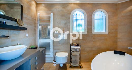 PROPRIETE D'ARCHITECTE - PISCINE - PlEIN SUD - CALME ABSOLU En vente : découvrez à MANDELIEU LA NAPOULE (06210) cette époustouflante propriété 10 pièces de 550 m2 et de 1912 m2 de terrain. Cette villa, sans vis-à-vis avec un bel aperçu Mer, est exposée plein sud. Elle est disposée comme suit : Un immense salon séjour, une cuisine semi-ouverte, américaine, aménagée et équipée, quatre chambres en suite, cinq salles de bains et cinq toilettes. Vous retrouverez également un grand espace de jeux avec bar, espace billard, cave à vin haut de gamme, chambres supplémentaires. le tout avec des prestations haut de gamme telles que : marbre au sol, cuisine en granit faite sur mesure, mobilier de grandes qualités... Un chauffage à air pulsé est installé dans toute la maison, ainsi qu'une climatisation réversible. En annexe une belle piscine, un jacuzzi, des espaces en terrasse, un grand pool house, un bassin avec des Carpes KoI, un terrain de pétanque et un jardin, sont également présents pour un confort exceptionnel. Ce havre de paix conçu par un architecte de renom, est en excellent état général et ne nécessite aucun travaux. Côté stationnements, elle dispose de six places de parking et un grand garage de 50 m2 attenant. L'accès est sécurisé par la présence d'un digicode , d'un interphone et d'une alarme. Le tout à 15 min à pied des commerces. L'Ecole Primaire les Minelles, le Collège Albert Camus et l'Ecole Maternelle Cottage Bleuets se trouvent à moins de 10 minutes à pied. Niveau transports, il y a huit gares à moins de 10 minutes en voiture. L'autoroute A8 est accessible à 2 km. Pour vos loisirs, vous pourrez compter sur une bibliothèque à quelques minutes à peine. On trouve aussi des restaurants, des commerces, trois boulangeries, une boucherie charcuterie, une épicerie et une poissonnerie. Cette maison est proposée à l'achat pour 4 250 000 euros. Les frais d'agence sont à la charge du vendeur. Les informations sur les risques auxquels ce bien est exposé sont disponibles sur le site Géorisques : www.georisques.gouv.fr. N'hésitez pas à contacter notre équipe pour plus de renseignements sur cette maison à vendre à MANDELIEU LA NAPOULE. Virtuelle virtuelle 3D disponible en agence. Chiara PETRIZZI Euro (EI) Agent Commercial - Numéro RSAC : - . 4250000 euros Honoraires à la charge du vendeur.